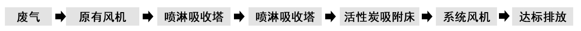 根據(jù)客戶需求和我司實地考察之后,最終采用‘兩級噴淋吸收法+活性炭吸附法’對其進(jìn)行處理。采用水噴淋一方面可以降溫,另一位方面能夠讓水吸一部分的有機廢氣,降低后續(xù)活性炭吸附的負(fù)荷。