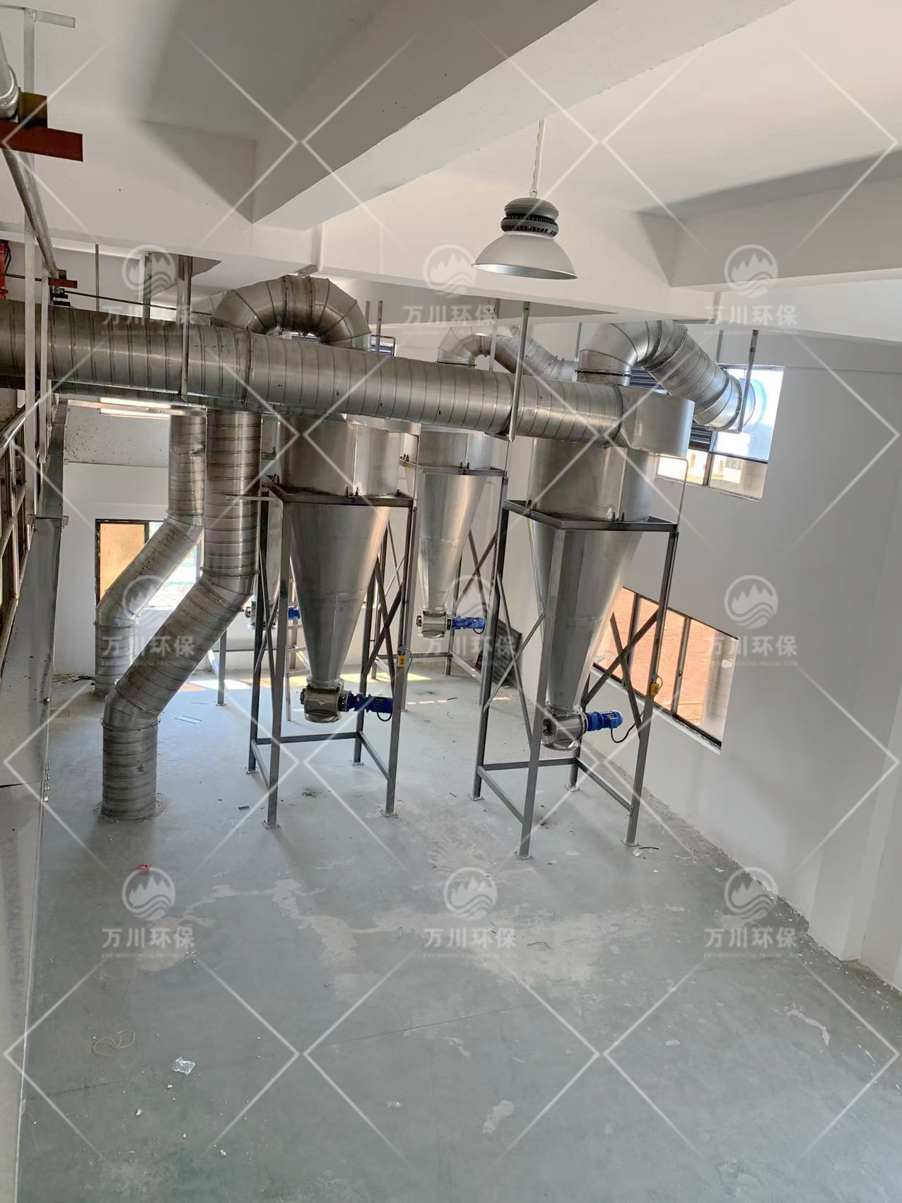 本次根據設計的方案共采用了4套旋風除塵器+脈沖除塵器組合工藝系統
