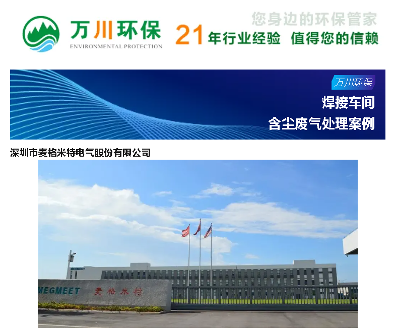 簡介:深圳麥格米特電氣股份有限公司,是電氣自動化領域硬件和軟件研發、生產、銷售與服務的?站式解決方案提供商工程師根據現場焊接煙塵性質、粒徑、現場工況等因素考量,故采用脈沖濾筒除塵器作為處理設備
