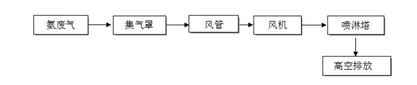 根據廠方提供的資料及現場勘察的情況,我司可以確定該廠的廢氣為“氨氣”。根據該廢氣的性質,萬川環保決定為該廠選定設備為--噴淋塔。(工藝簡圖如下)